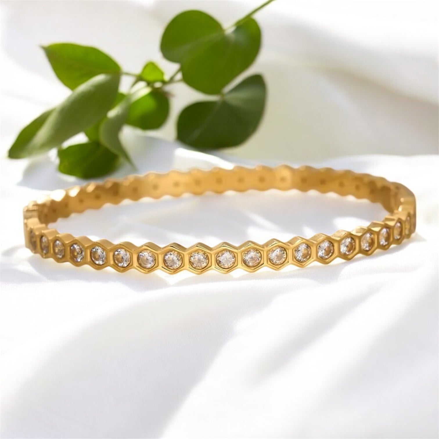 Honeycomb Sleek Bangle Bracelet - Gold